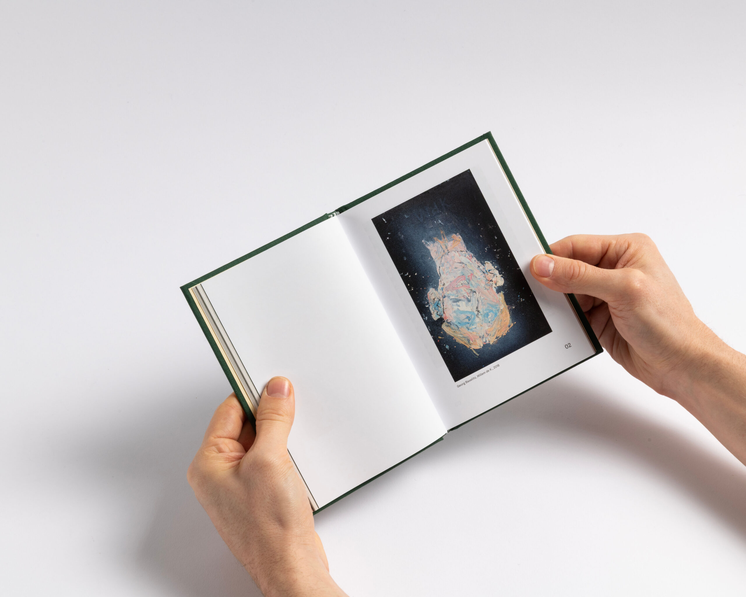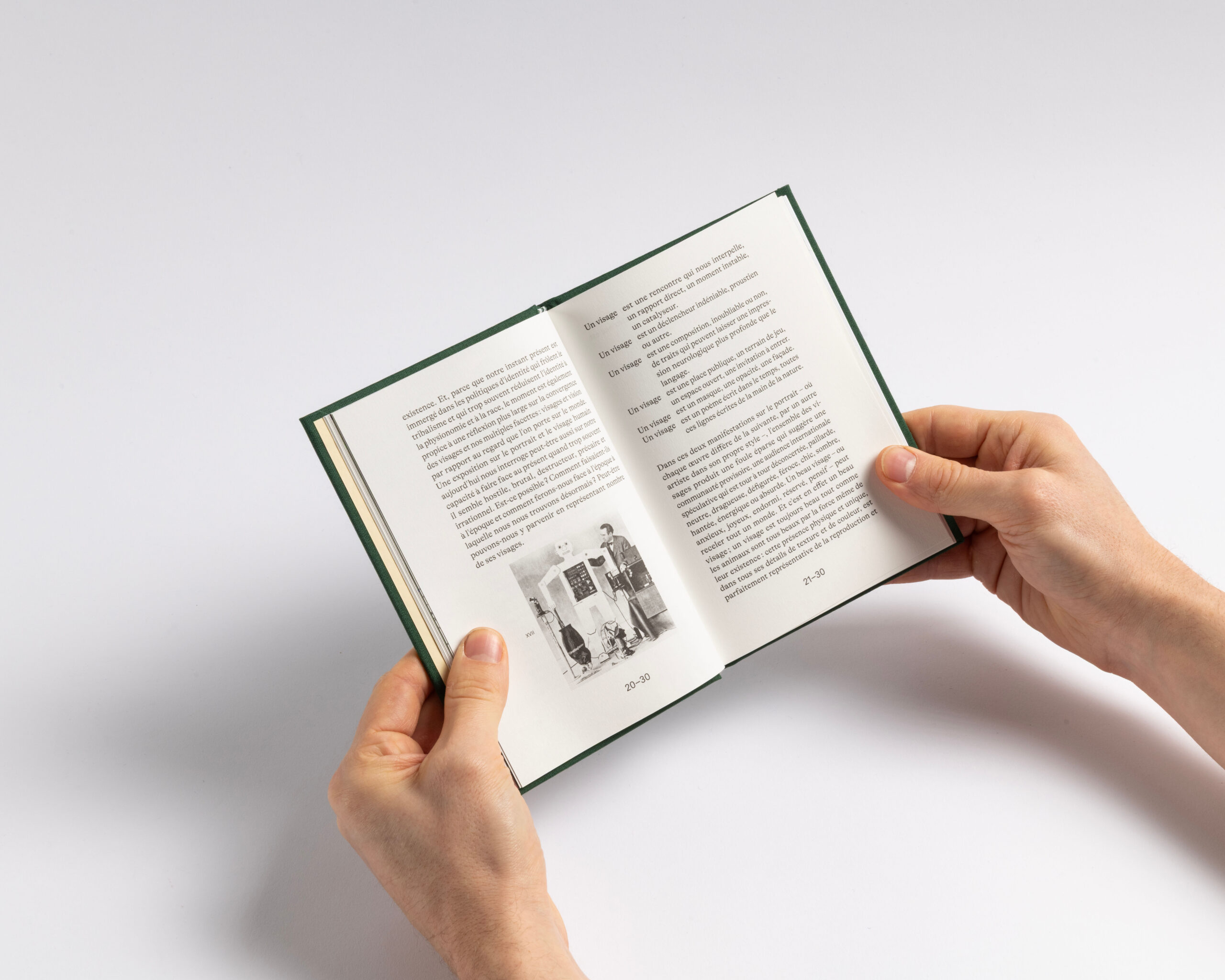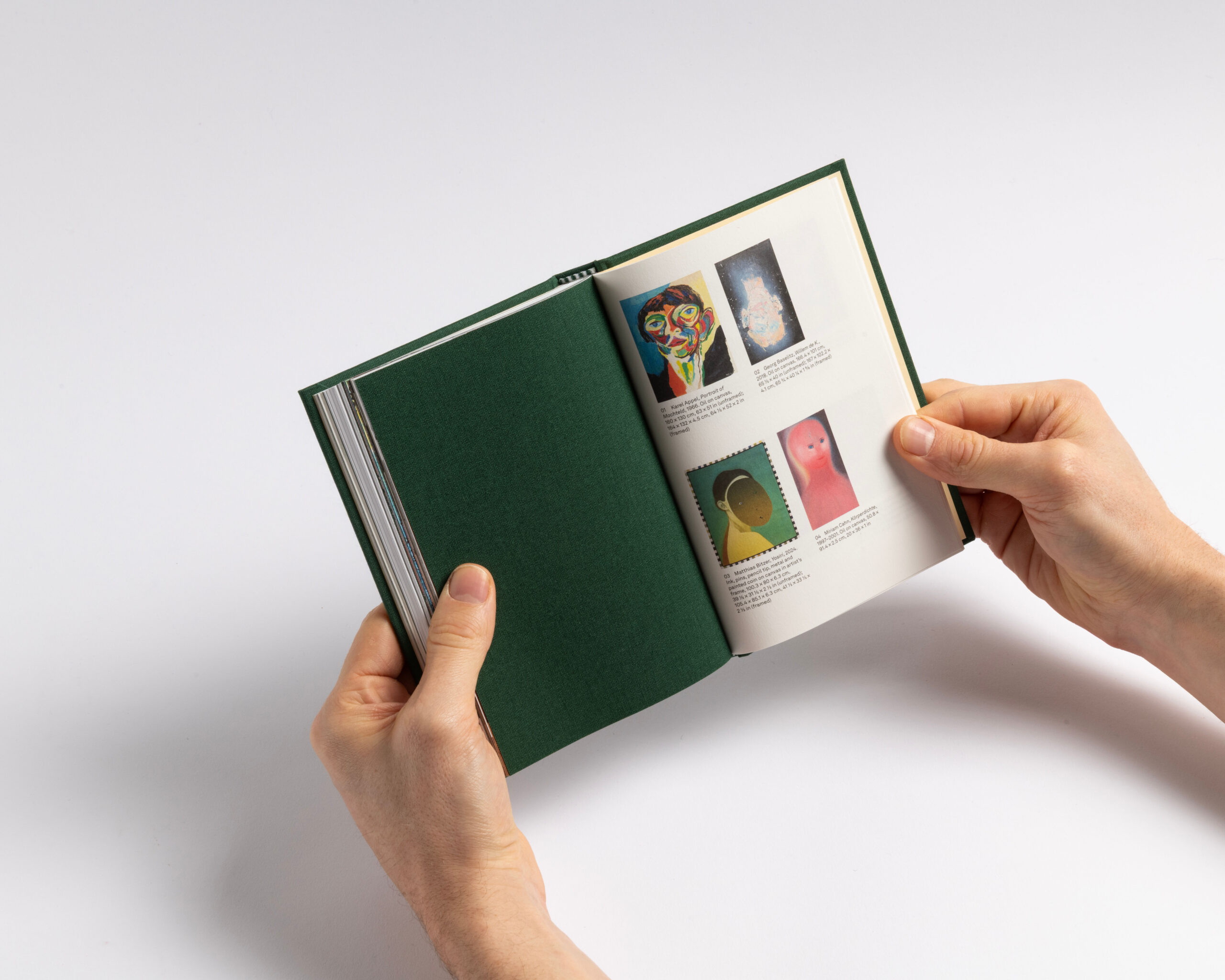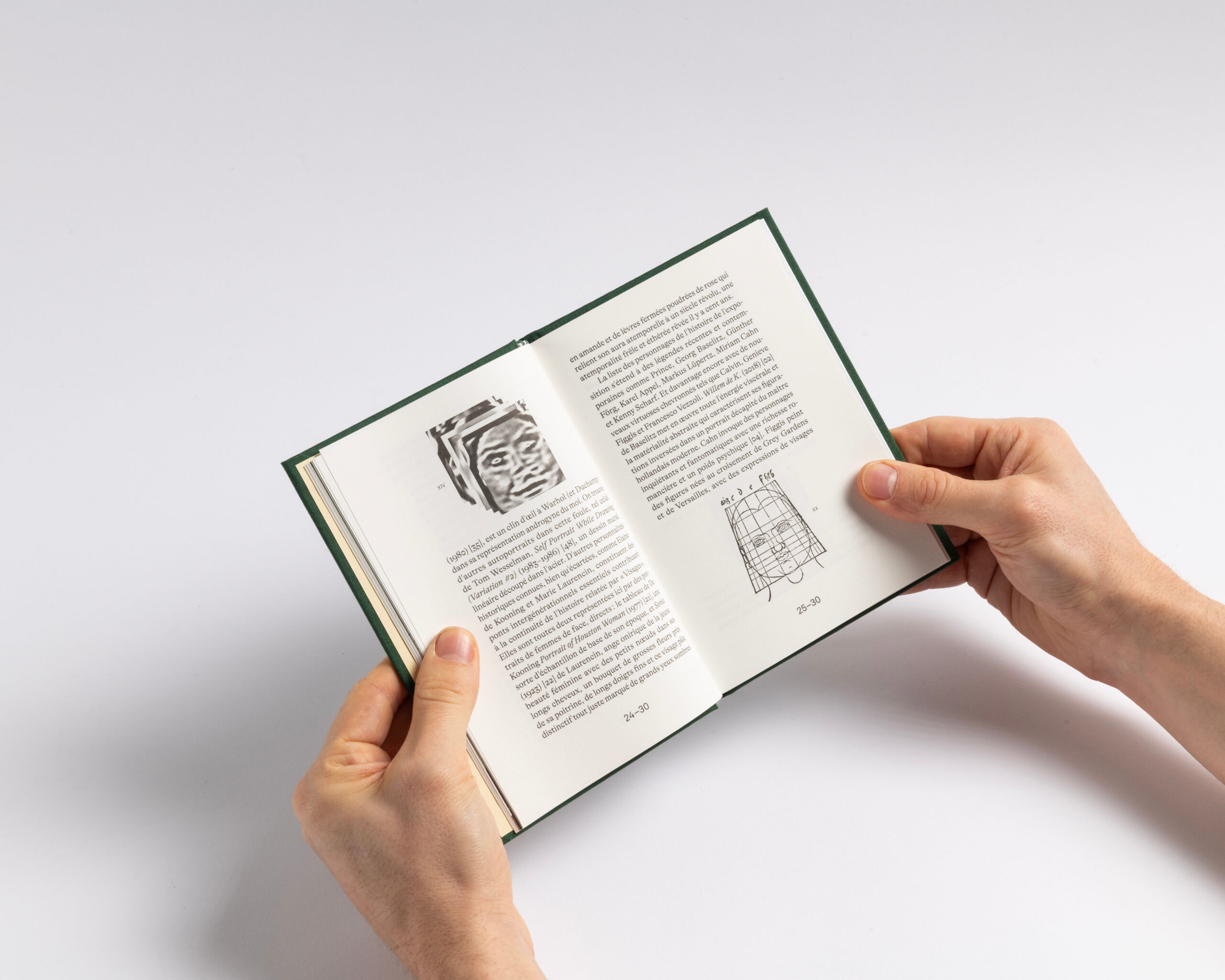 The book features a clear structure and a systematic organization. Each section (text, works, exhibition views, details and index) has its own independent page numbering system. To emphasize this structure, we incorporated the canvas — used for the hard cover — as a four-page signature that wraps around the 16-page signatures of each section. This design choice highlights what forms the « face » of the book: the cover and the canvas, akin to the pores of its skin. Additionally, the alternation between coated and uncoated paper further accentuates this pronounced rhythm. Design with Guillaume Rolland.
