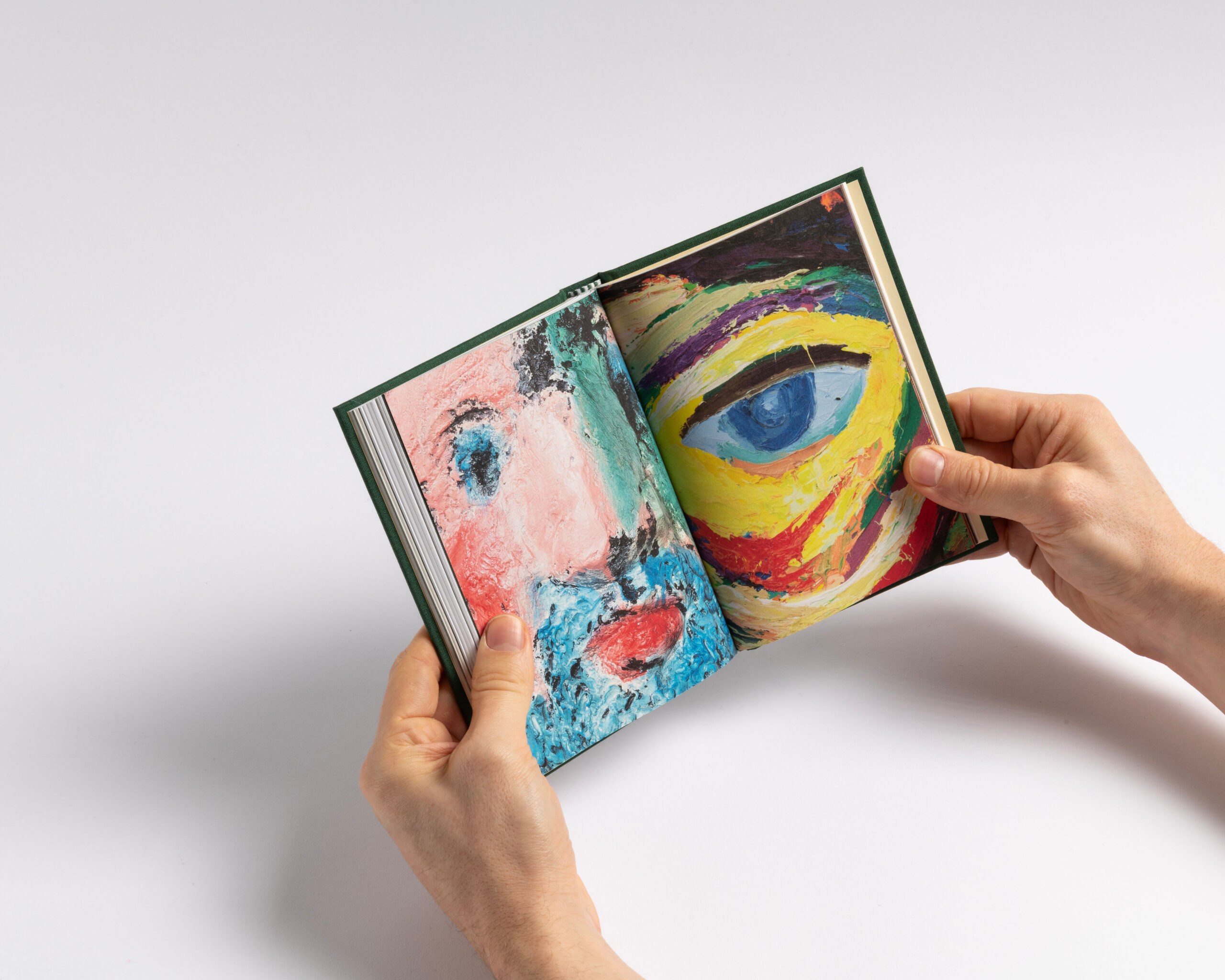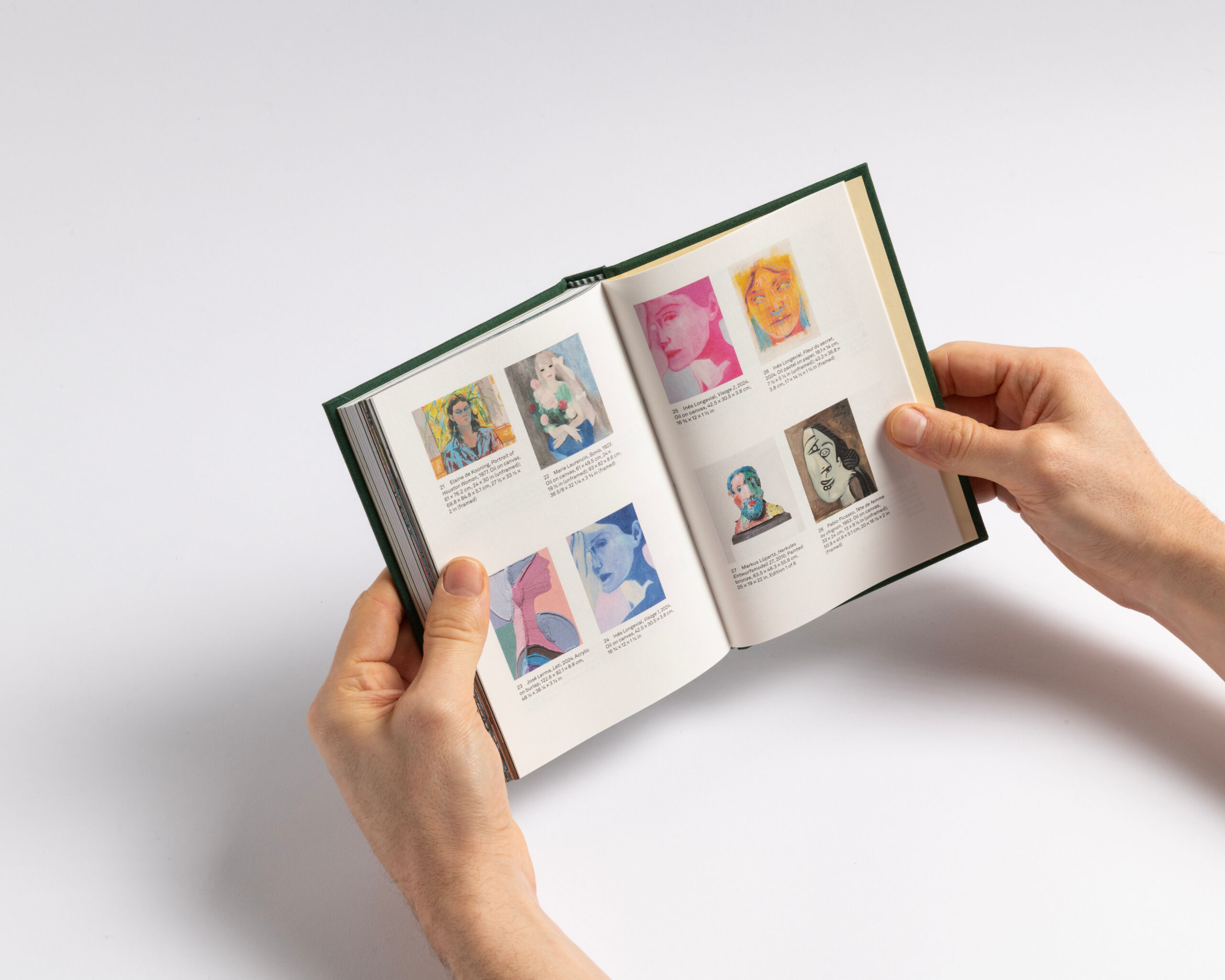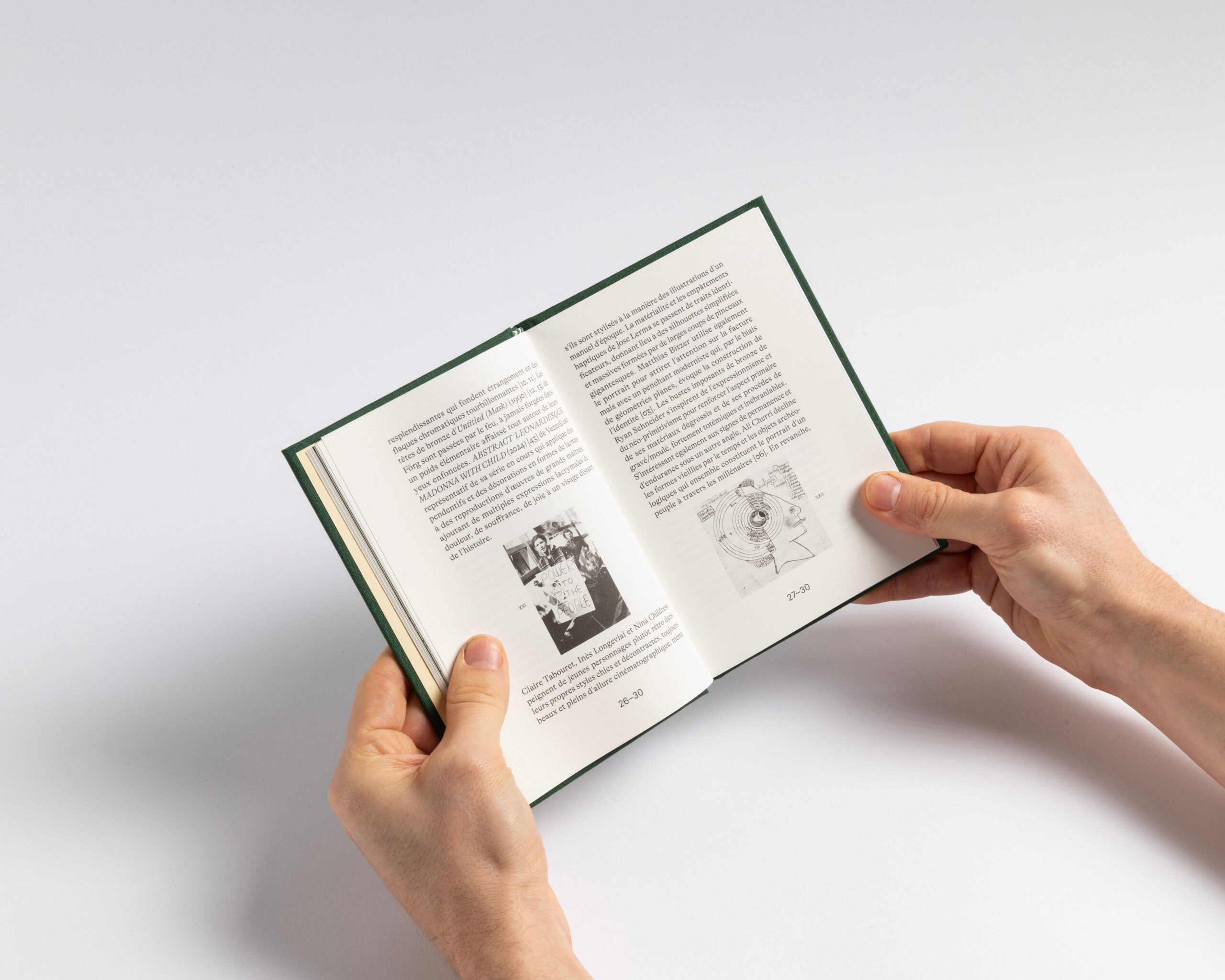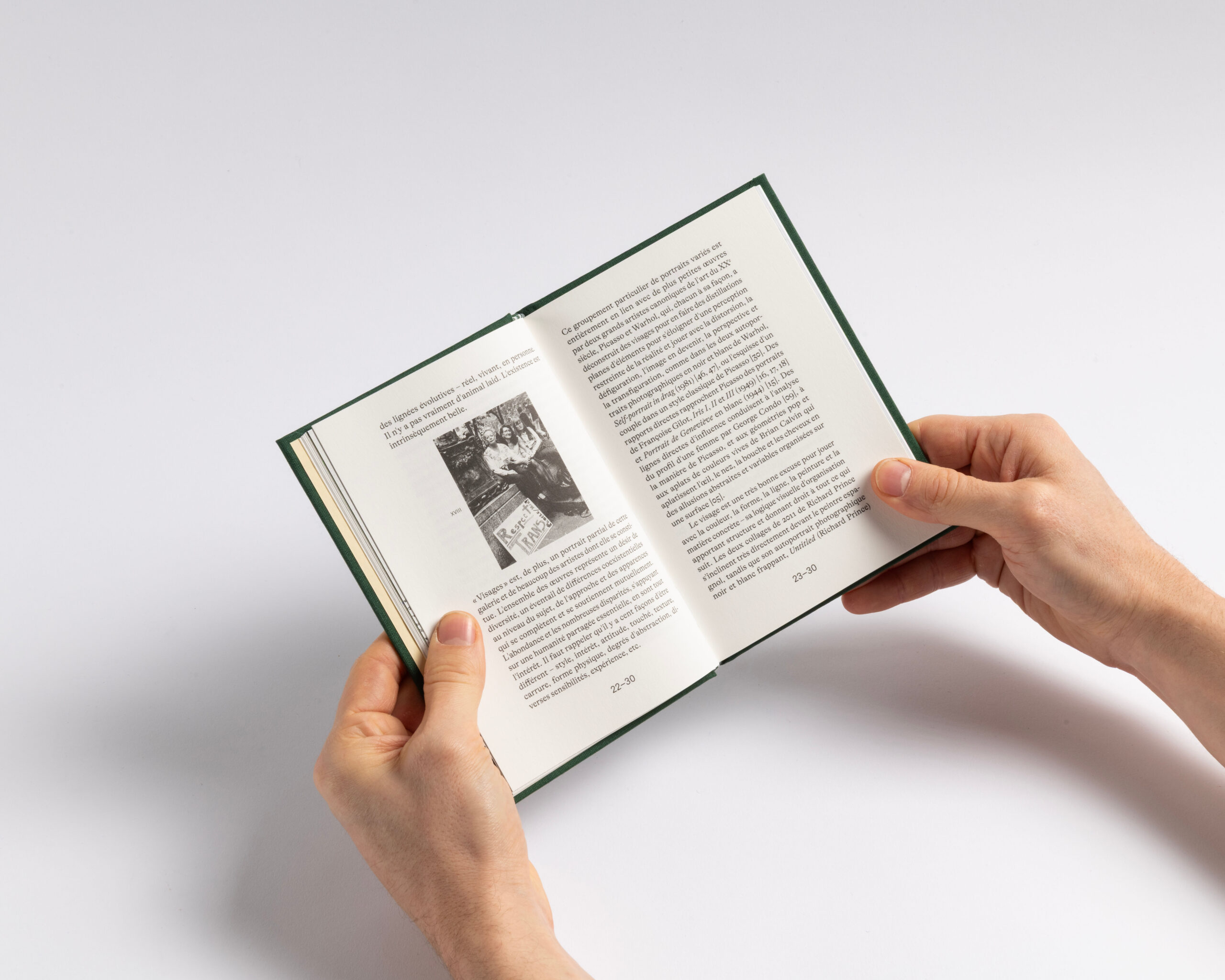 The book features a clear structure and a systematic organization. Each section (text, works, exhibition views, details and index) has its own independent page numbering system. To emphasize this structure, we incorporated the canvas — used for the hard cover — as a four-page signature that wraps around the 16-page signatures of each section. This design choice highlights what forms the « face » of the book: the cover and the canvas, akin to the pores of its skin. Additionally, the alternation between coated and uncoated paper further accentuates this pronounced rhythm. Design with Guillaume Rolland.