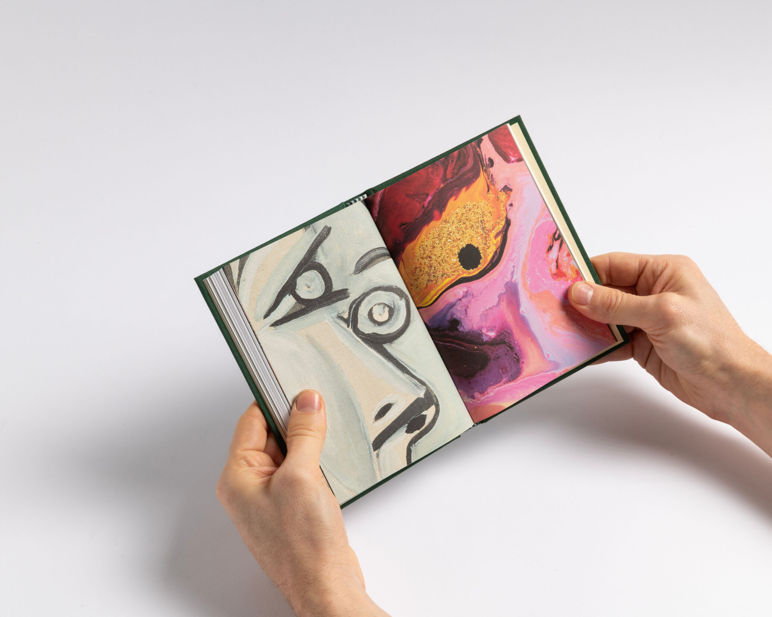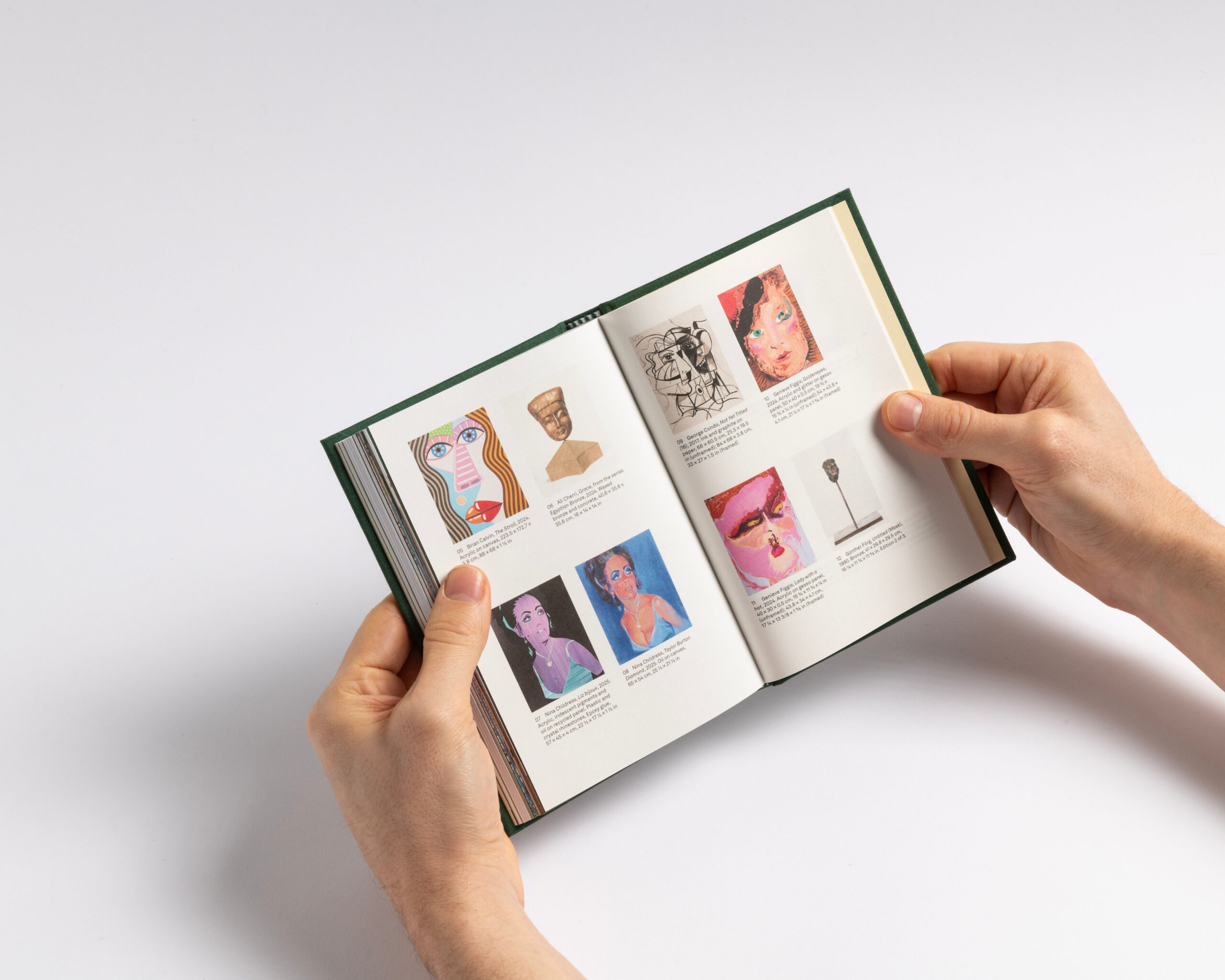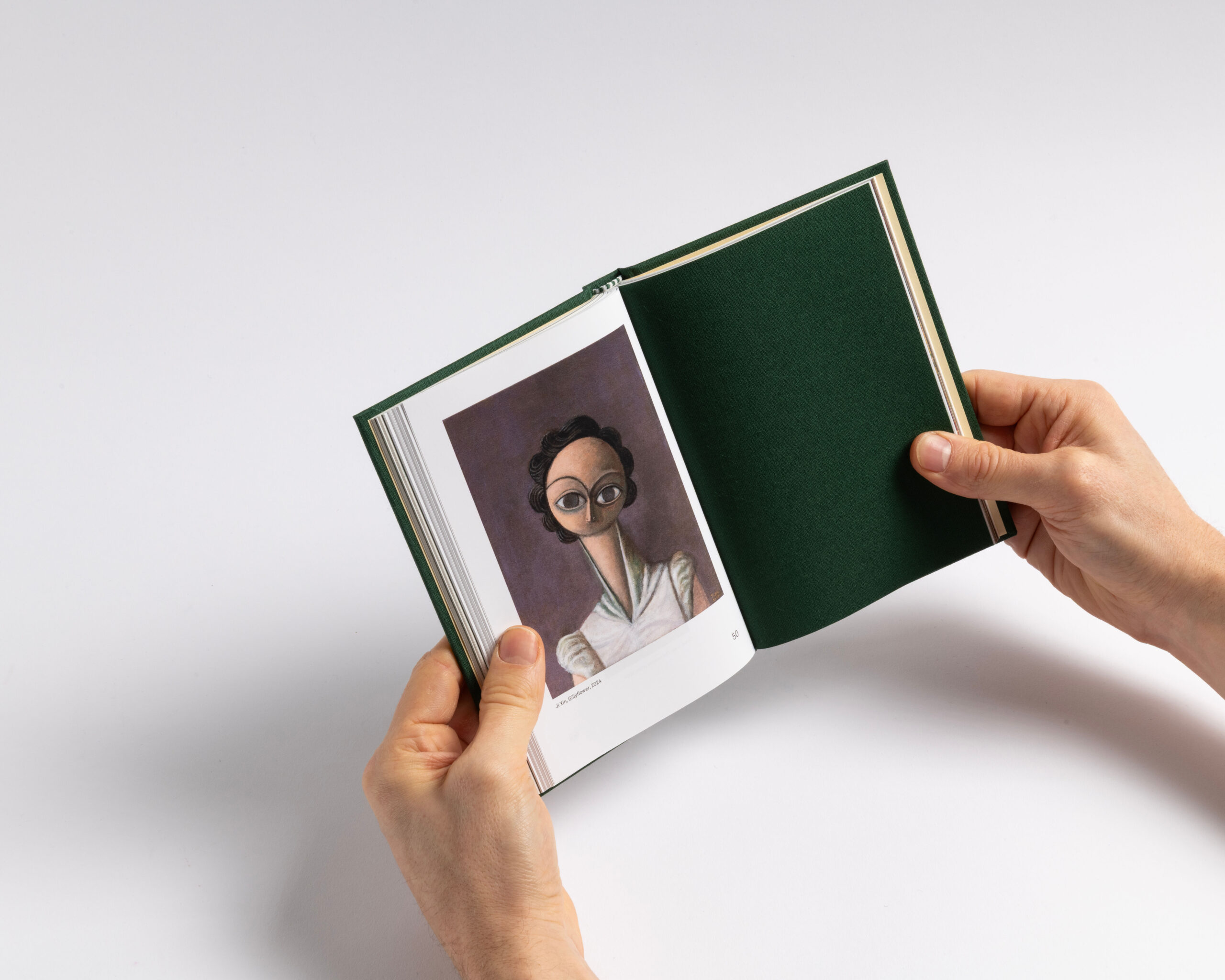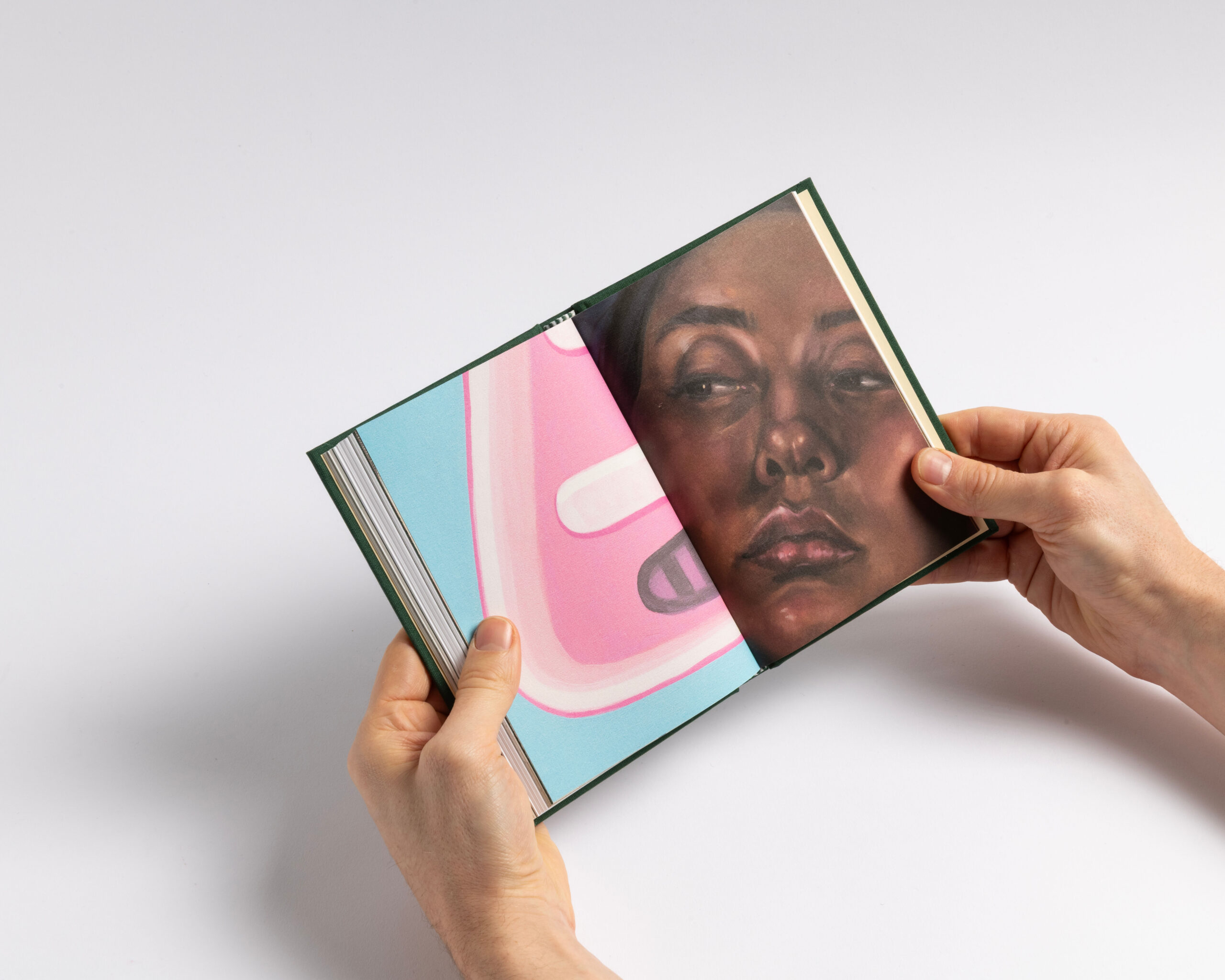 The book features a clear structure and a systematic organization. Each section (text, works, exhibition views, details and index) has its own independent page numbering system. To emphasize this structure, we incorporated the canvas — used for the hard cover — as a four-page signature that wraps around the 16-page signatures of each section. This design choice highlights what forms the « face » of the book: the cover and the canvas, akin to the pores of its skin. Additionally, the alternation between coated and uncoated paper further accentuates this pronounced rhythm. Design with Guillaume Rolland.
